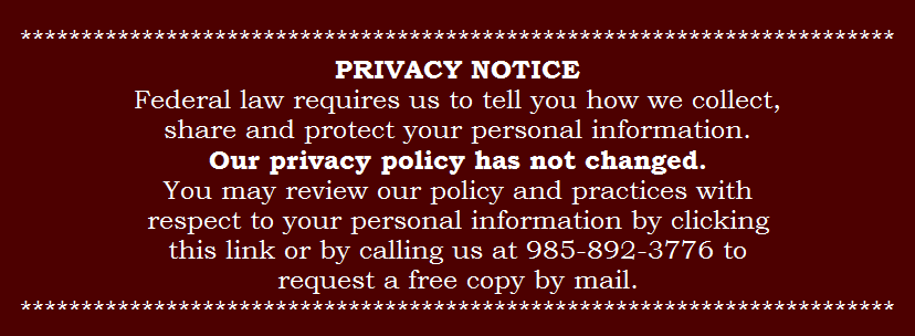Your privacy is very important to us. We would like to advise you that Internet email is not secure. Please do not submit any information that you consider confidential. We recommend you do not include your social security or account number or other specific identifying information.